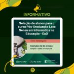Inscrições abertas, para o Processo Seletivo de alunos para o curso de Pós-graduação Lato Sensu em Informática na Educação, oferecido […]